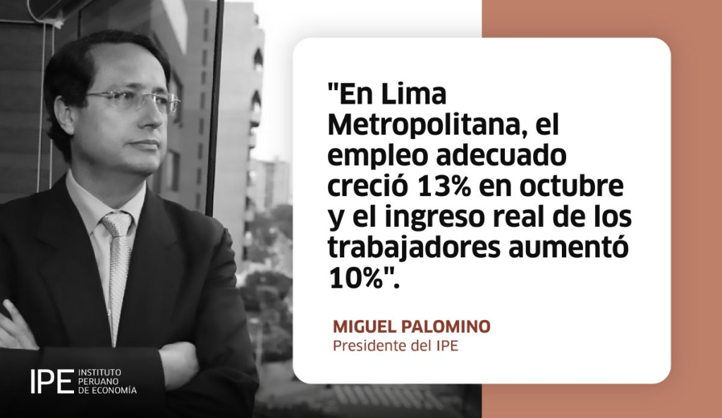 El Instituto Peruano de Economía (IPE) proyectó que el empleo adecuado en Lima crecerá 11,9% interanual en 2025, alcanzando el 65,1% del empleo total, el nivel más alto desde 2014.